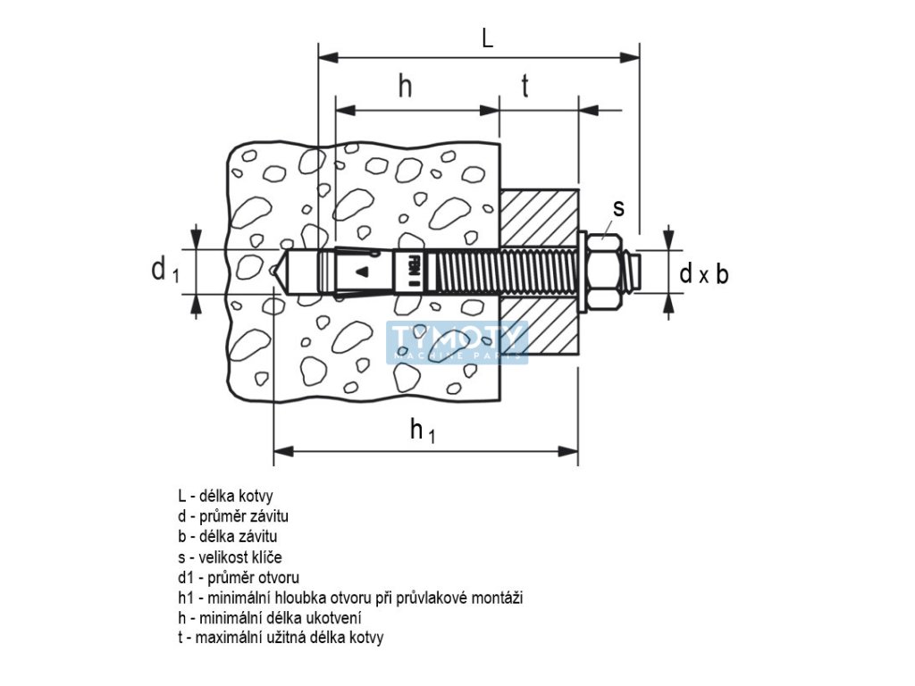 Prievlaková jednokónová oceľová kotva, galvanicky pokovovaná, s podložkou a maticou. Je vhodná na ukotvenie konštrukcií, stĺpov, strojov, zábradlí a podobne do betónu bez trhlín a kameňa.