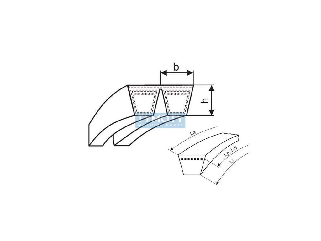 Klinový remeň násobný 2-HB 3150 La (B 124) Rubena UniBP. Je viacklinový (násobný) remeň profilu HB 3150 pre maximálne zaťaženie. Šírka remeňa = 33 mm a výška = 15 mm. Dĺžka Lw=La teda 3150 mm . Presná výroba na moderných strojoch zaistí dlhú životnosť. Váš dodávateľ násobných remeňov značky Rubena. Tisíce typov skladom ihneď na expedíciu.