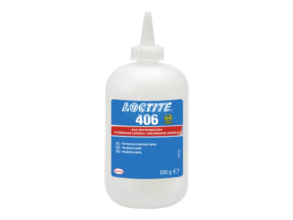 Vteřinové lepidlo Loctite 406 je přednostně určeno pro plasty a elastomery, pryž tam, kde je požadována velmi krátká doba fixace. Zaručuje velmi vysokou pevnost spoje také u problematicky spojovatelných materiálů. Loctite 406 je natolik výkonné vteřinové lepidlo, že lepený spoj je velmi často pevnější než samotný lepený materiál. Vhodné je také pro většinu termoplastů, termosetů a elastomerů, zvládne také ocel, hliník, zinek, neopren, ABS, PVC, polykarbonát a fenol.