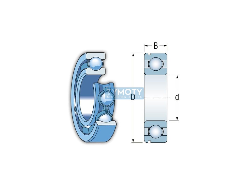 KINEX ložisko 6409 N - nerozoberateľné jednoradové radiálne guličkové ložisko otvorené bez tesnenia s oceľovou klietkou vedenou guličkami s normálnou radiálnou vôľou. Ložisko 6409 N má drážku pre poistný krúžok.