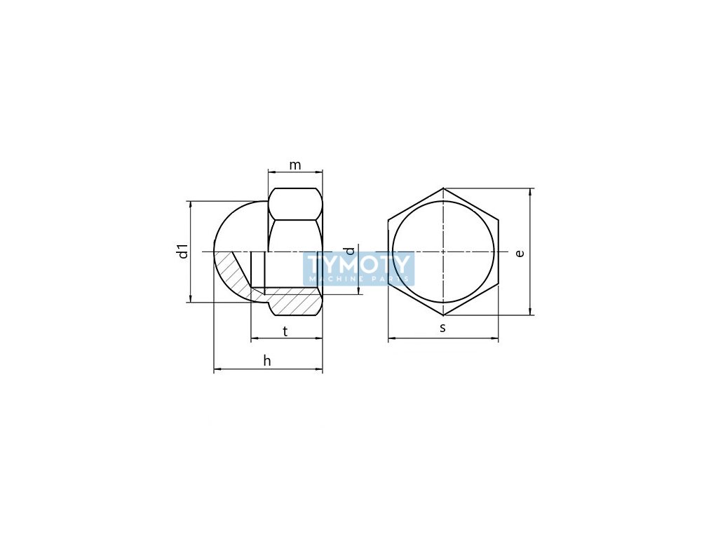 Domov › Spojovací materiál › matice šesťhranné uzavreté › klobúkové DIN 1587 › nerezová oceľ A2 › Matica klobúková DIN 1587 M16 nerez A2