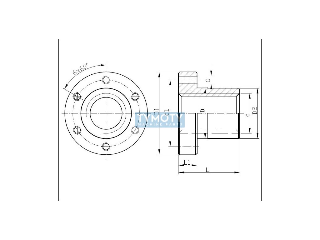 Bronzová prírubová matica valcová - kruhová s ľavým trapézovým závitom.