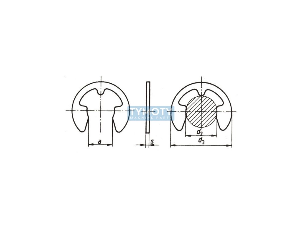 Nerezový poistný strmeňový krúžok pre hriadeľ - nerezová oceľ A1 - DIN 6799 - ČSN 022929. spojovací-materiál-poistné krúžky.