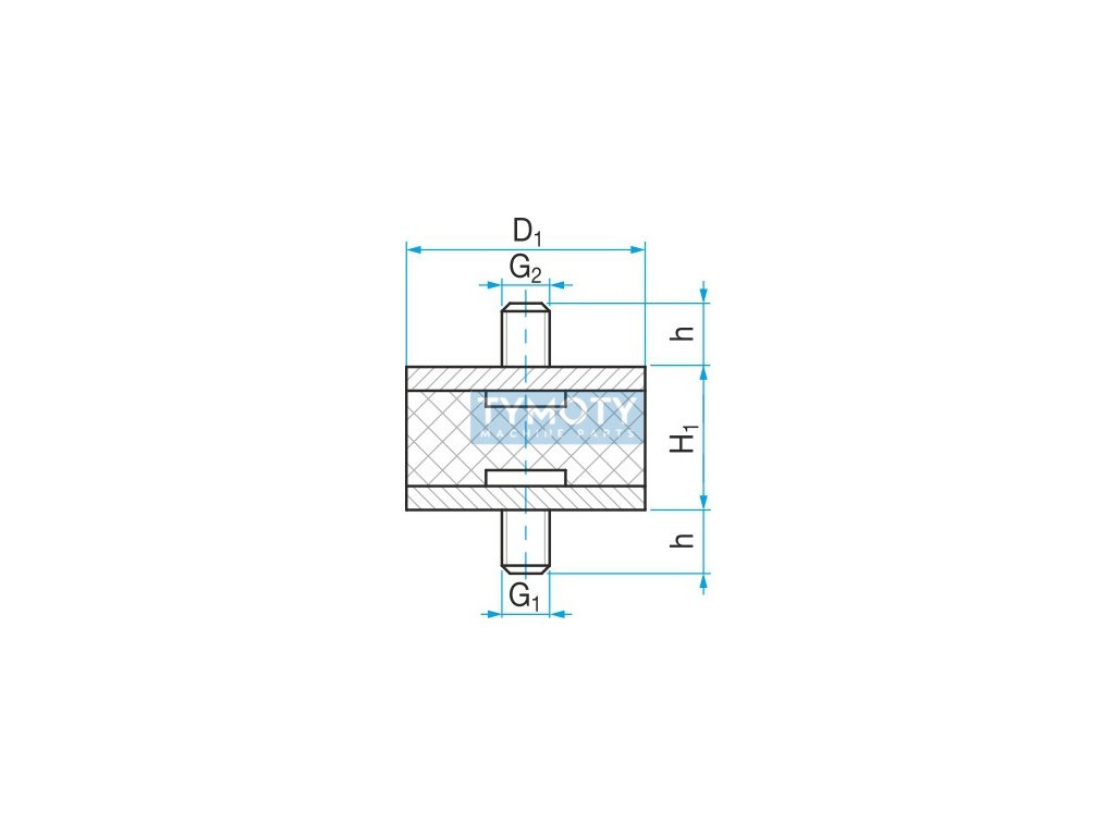 Silentblok - valcová pružina typ 1 - je vyrobený z gumy o tvrdosti 55 ShA v tvare valca a na jeho čelá sú navulkanizované oceľové dosky so skrutkou. Je určený na pružné uloženie, tlmenie rázov a kmitov, hlukovú izoláciu a prenos síl.