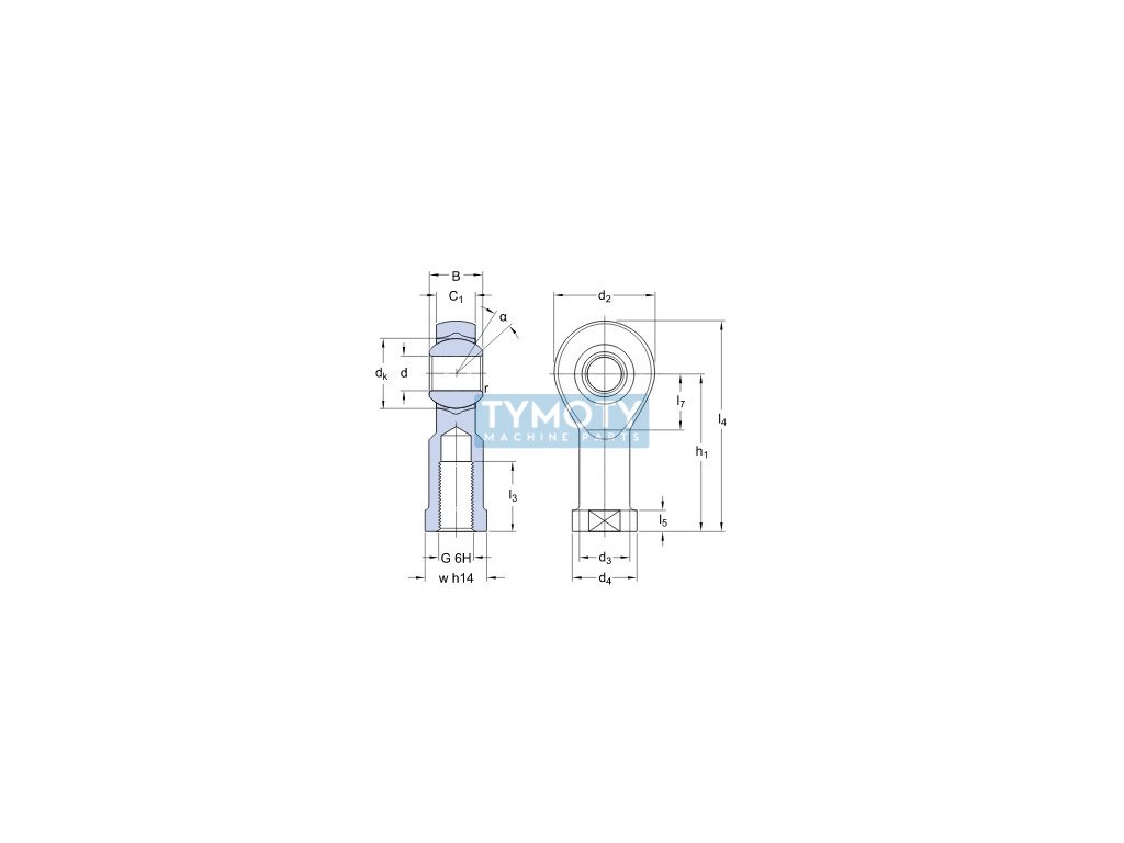 Kĺbová hlavica, vnútorný pravý metrický závit, klzná plocha-oceľ/PTFE FRP, bezúdržbová. Medzi telesom a vnútorným krúžkom ložiska je klzná vrstva z polyméru zosilneného sklenými vláknami s obsahom PTFE, ktorá je vlisovaná do telesa. Vhodné pre ťažké zaťaženie s konštantným smerom.