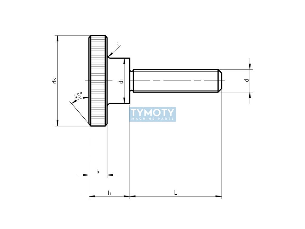 Skrutka s valcovou ryhovanou hlavou ČSN 021161 - DIN 464, pozinkovaná oceľ.