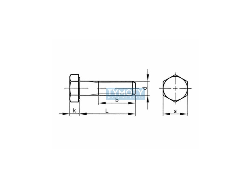 Oceľová skrutka so šesťhrannou hlavou s jemným metrickým čiastočným závitom, oceľ triedy pevnosti 8.8, bez povrchovej úpravy.