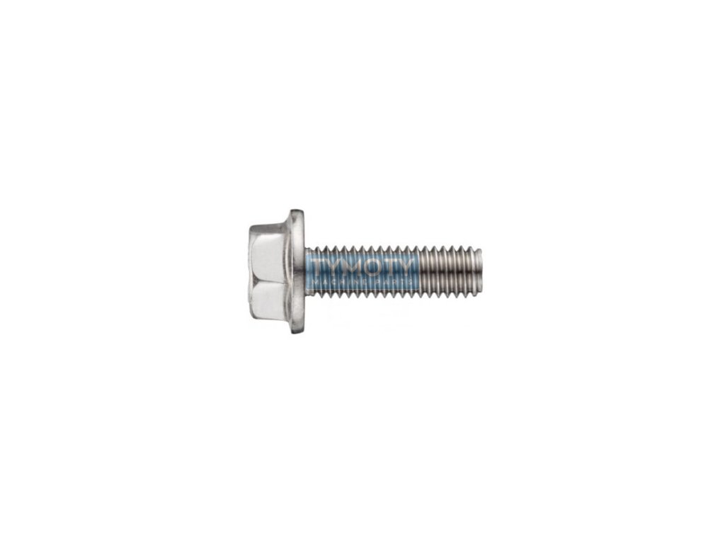 Nerezový spojovací materiál - skrutka M10x16 DIN 6921 A2 - nerezová skrutka so šesťhrannou hlavou s hladkým golierom, vyrobená z nerezovej ocele A2 bez povrchovej úpravy, s metrickým závitom M10 so štandardným stúpaním 1,50 mm . Dĺžka tela skrutky so závitom L = 16 mm.