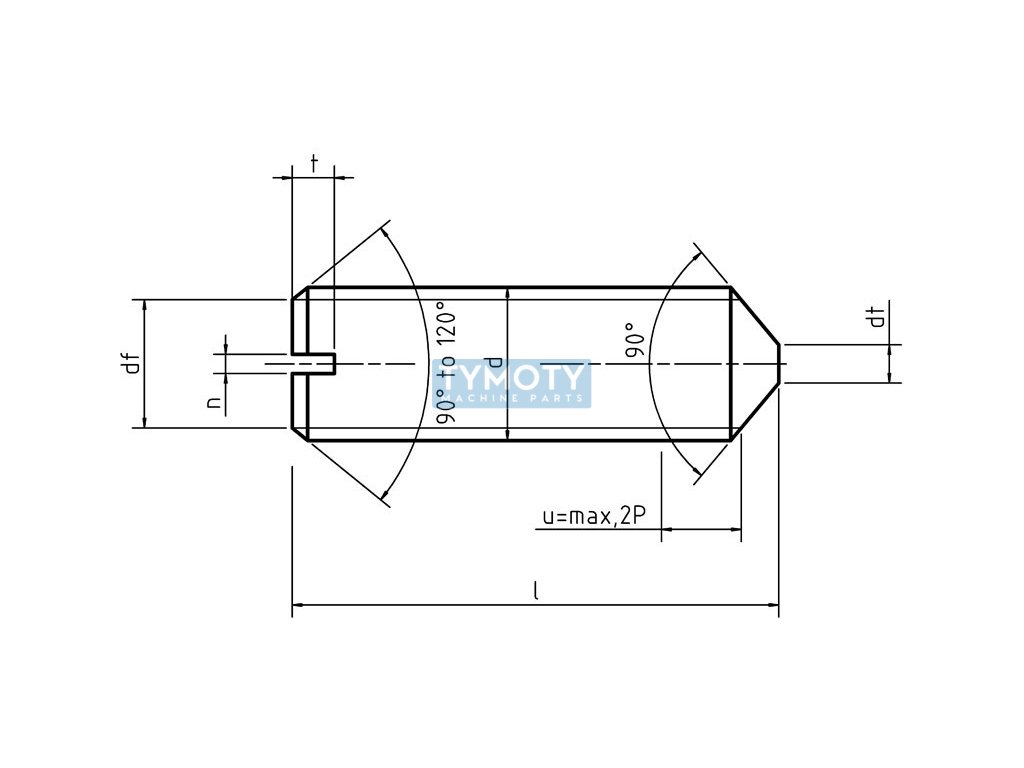 Domov › Spojovací materiál › skrutky ostatné › stavacia, hrot-drážka DIN 553 › oceľ 14H bez úpravy › Skrutka stavacia s hrotom-drážka DIN 553 M5x8