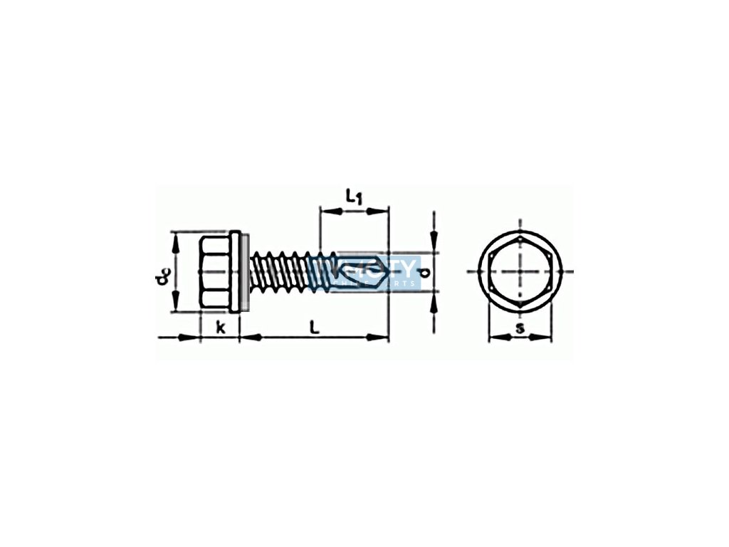 Domov › Spojovací materiál › skrutky so šesťhrannou hlavou › samovrtné TEX DIN 7504K › s podložkou, pozinkovaná oceľ › Skrutka TEX šesťhranná hlava DIN 7504K 4,8x16 pozink + podložka