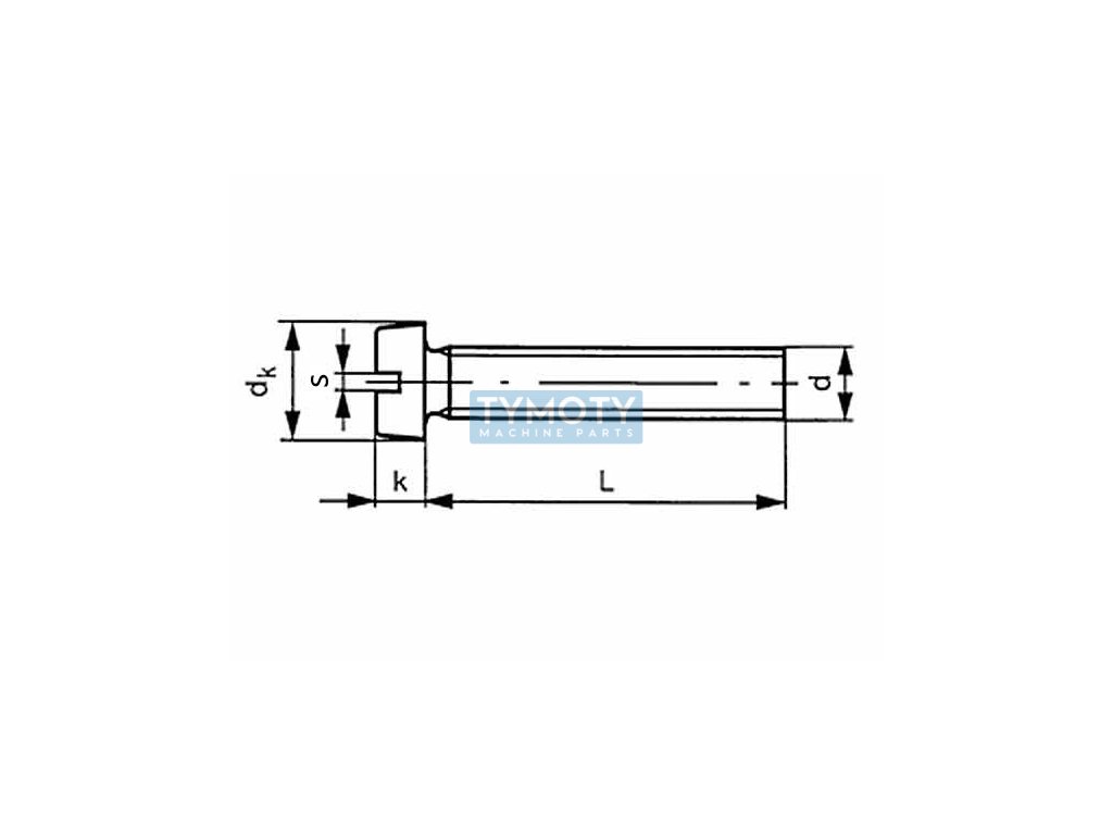 Skrutka s valcovou hlavou s drážkou, pozinkovaná oceľ, DIN 84, ISO 1207, ČSN 021131.