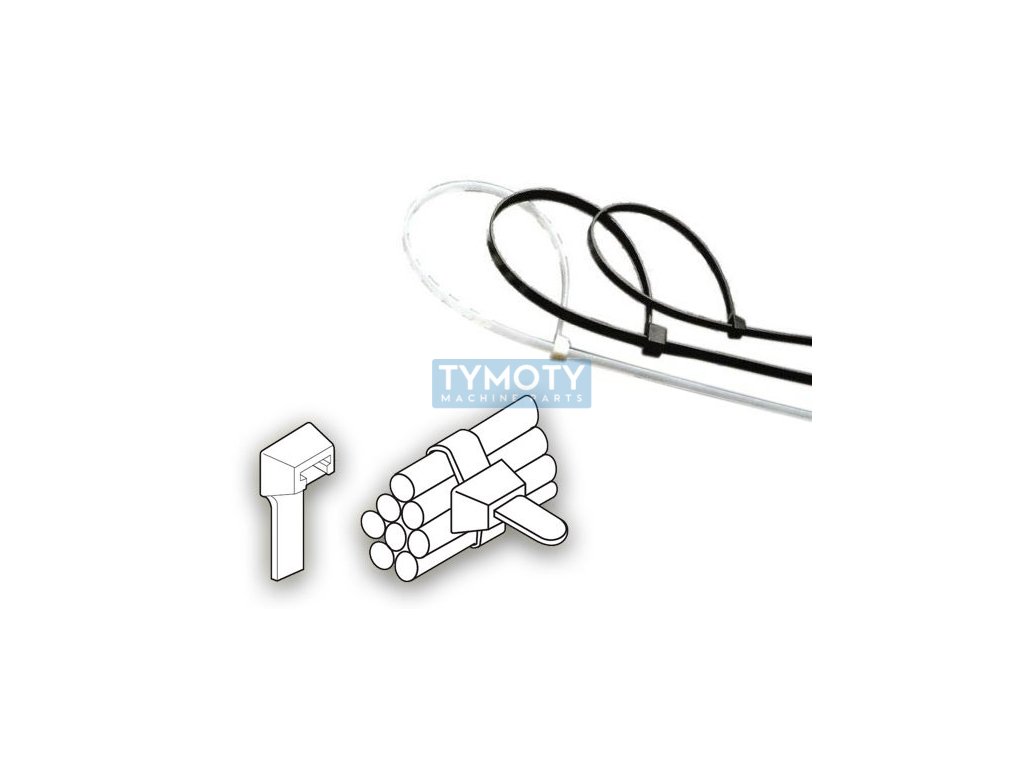 Viazacia páska káblová štandardná, biela (transparentná, prírodná) farba s rozmermi 7,8 mm x 300 mm . Viazacia páska je stavaná pre maximálnu záťaž 55 kg a objíme zväzok s priemerom 80 mm. Bezpečne odoláva voči olejom, benzínu, slanej vode, rozpúšťadlám, plesniam a tiež voči riedeným organickým kyselinám. Materiál pásky: · polyamid 6,6 podľa 94V-2 Teplotná stálosť viazacej pásky: · -40°C až +85°C